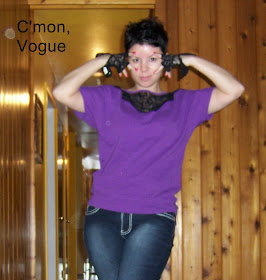 I was definitely a Madonna fan as a kid. This purple top is from the Material Girl line at Macy's. It's juniors, but it's a simple silhouette so I think I can get away with it. Those are the jeans I featured in the Kittens and Jeans post.